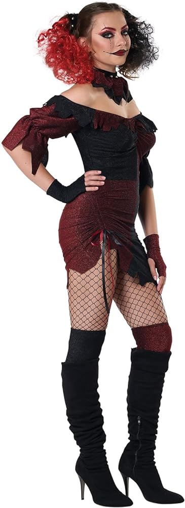 El disfraz “She Who Laughs Last” de California Costumes te llevará al misterioso mundo del circo con un toque de diversión y maldad.