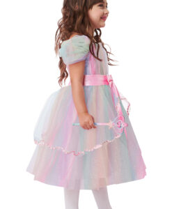 - Vestido de princesa con diseño de arcoíris.