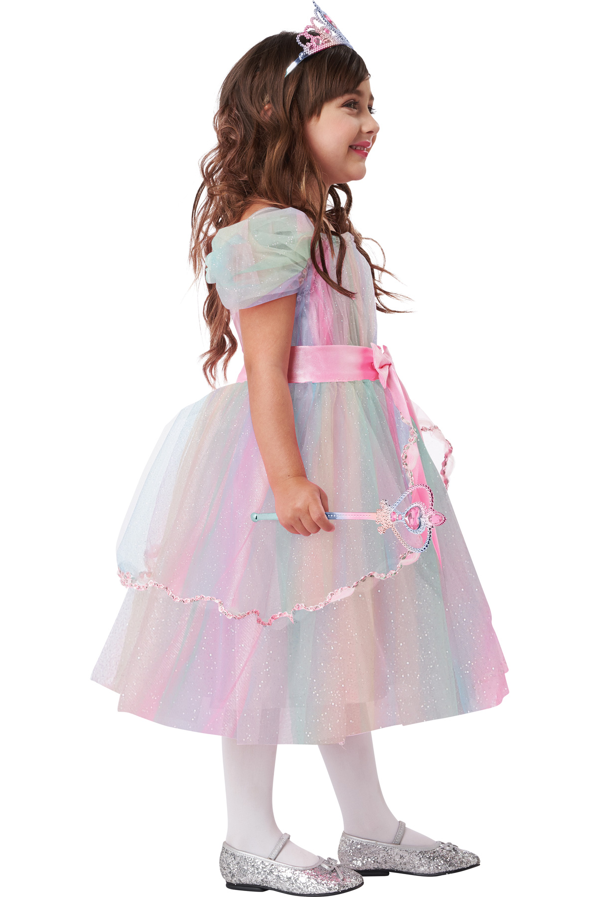 El disfraz de la marca California Costumes modelo Colorful Rainbow Princess es un traje inspirado en una princesa con un diseño colorido y vibrante que representa un arcoíris. Ideal para añadir un toque mágico y alegre a la vestimenta de una princesa.