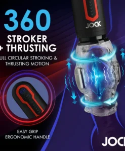 Disfruta de una experiencia más completa con el Spinning & Thrusting Masturbator de JOCK, diseñado para ofrecer múltiples tipos de estimulación en un solo dispositivo. Su funda de goma elástica segura para el cuerpo cuenta con una entrada en forma de boca y un interior con relieves que proporcionan contacto continuo y masaje.