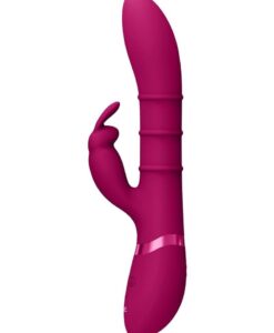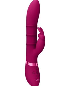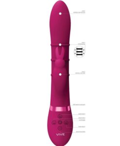 La marca de alta gama VIVE representa la máxima estimulación a través de la innovación continua. Este vibrador Rabbit para el punto G de gama alta cuenta con una característica única que hará que tus dedos de los pies se enrosquen en éxtasis. Tiene un juego de 3 anillos estimulantes integrados en el eje de silicona suave de grado médico que se mueve hacia arriba y hacia abajo para un masaje interno como ningún otro. Los anillos vienen con 10 modos de velocidad diferentes, mientras que el estimulador del punto G y el estimulador Rabbit tienen 10 modos de vibración diferentes que te brindan la increíble cantidad de 1000 configuraciones distintas para elegir. El VIVE054 es resistente al agua/sumergible IPX7 y recargable. Una carga de 150 minutos te brindará 45 minutos de placer desenfrenado a menos de 60 dB. Además, este vibrador único e innovador tiene un botón de bloqueo de viaje y clímax con un toque; cuando estés listo para el orgasmo, solo presiona el botón de clímax y con un toque todos los motores pasarán a su configuración más fuerte.